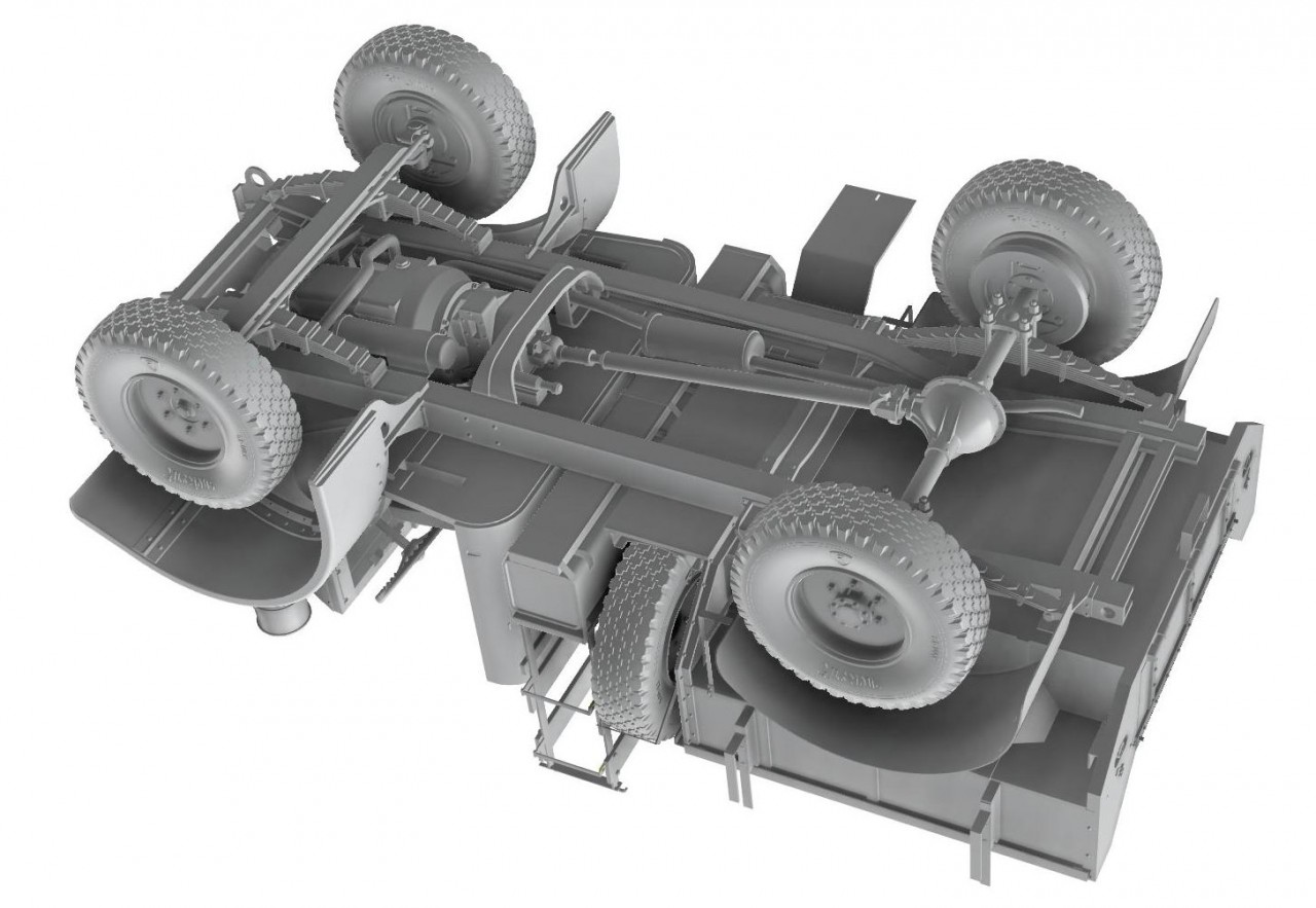 The Ford F30’s had the advantage of 4 wheel drive, a more powerful 95HP V8 engine, and a bigger load area compared to the Chevrolet trucks. However they were harder to camouflage due to their height, louder with the 4x4 transmission and V8 engine, heavier, had a shorter range due to their poorer MPG (Miles per Gallon) and were less reliable. Some of the trucks had their bodies moved back 12”/300mm on the chassis for better centralisation of the load over the rear axle. These can be identified by 2 spare wheels fitted between the body and the cab.